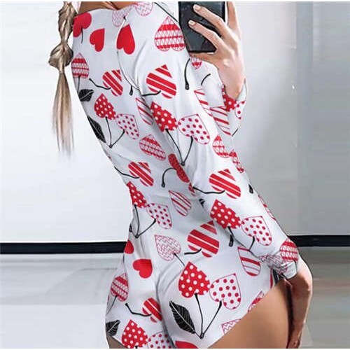 Our Red Heart Shape Cherry Design One-Piece Body Suit makes a perfect addition to any women's intimate loungwear.