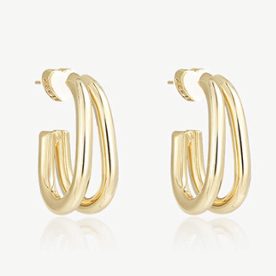 A classic hoop gets an extra makeover. Not one, but two elongated hoops on one pin back earring. Length: 1".