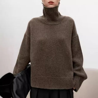Our High Neck Cashmere Loose & Thick Sweater keeps cool days away and gives you a stylish fashion look. Wear it on any casual occasion. Hand wash cold. Hang to dry.