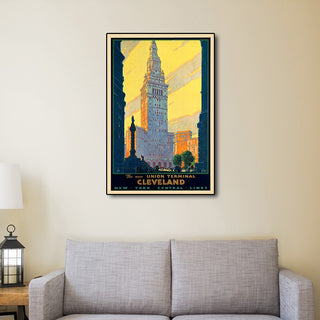 The Cleveland union terminal vintage travel unframed print wall art is the perfect decorative accessory for your home. This print is a visual artistic expression that allows you to decorate your space in style. Unframed, this flat poster art has a fresh and distinct taste to grace your walls with style. Reproduced for you on paper, this hanging decorative accent will be a trendy and fashionable way to dress your walls. Adding this hanging wall art to your space to make your room feel more finished and attractive. Instantly liven up your space with this art that brings color and dimension to your walls. 54 inches H x 36 inches W