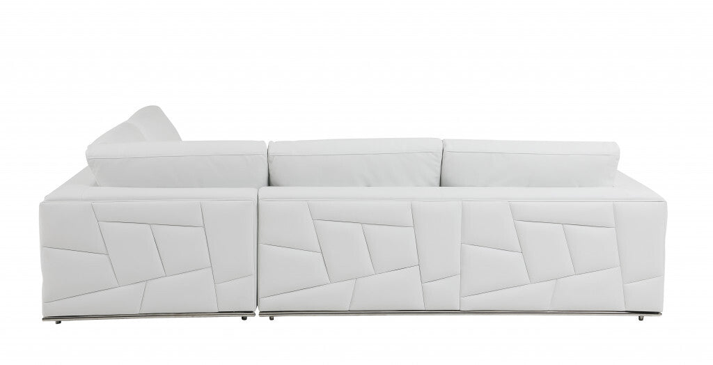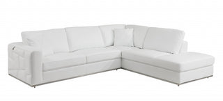 Take your relaxation to the next level with this super soft and comfortable white italian leather modular l shaped two piece corner sectional. The high-end premium leather used makes your lounging luxuriously comfortable and adds an elegant appeal to your space. Square arms offer a comfy place to rest. Chrome metal legs effortlessly elevate the room and add a touch of contemporary design. L-Shape sectionals are a perfect way to optimize seating choices without cluttering the room or breaking up the space you have. Great for everyday lounging and for entertaining, sectionals are an ideal way to seat multiple people. 35" H x 117" W x 40" DSHIP FROM : USASHIP TO : USA
