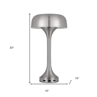 With this 22" nickel metal two light usb table lamp with nickel dome shade you can bring in design to any space along with adding some ambient lighting. A gorgeous nickel metalbase brings just the right amount of pizzazz to this fabulous lamp. The nickel dome metal shade is finishes this piece off nicely and symmetrically This standard table lamp is designed to provide general lighting to the area. The light that this lamp throws is soft and warm to elevate the look of most any space in your home. It is perfect for virtually any decor. 22" H x 12" W x 12" DSHIP FROM : USASHIP TO : USA