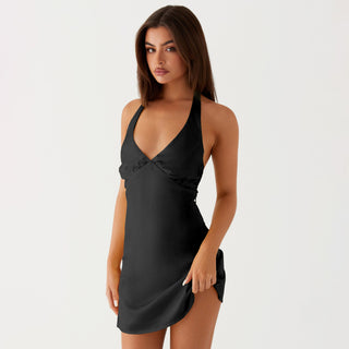 Elevate your look with this Pure Color Halter Dress, designed to turn heads. The tied halter neckline and backless silhouette create a sexy, flattering fit that highlights your shoulders and back. Its simple yet bold design adds a charming and spicy edge, perfect for nights out or special occasions. Embrace confidence and style in this effortlessly alluring dress.