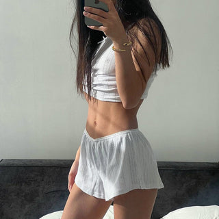Experience comfort and style with this two-piece jacquard white pajama set. Crafted from breathable, cool fabric, these knitted suspender shorts and matching top offer a flattering fit perfect for relaxing at home. Elevate your loungewear with a chic design that combines softness and elegance, making every moment cozy and confident.
