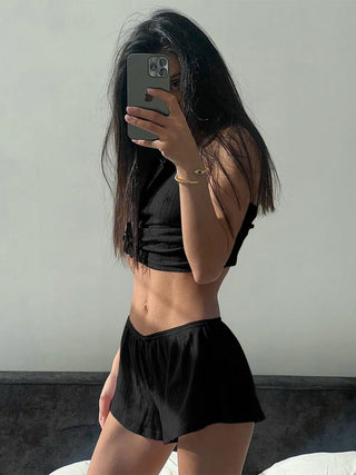 Experience ultimate comfort and style with our Square Neck Cami and Shorts Set! This slim fit loungewear set offers the perfect balance of cozy functionality and sexy design, making it the ultimate choice for your night time lounging. Embrace the perfect combination of fashion and comfort with our set. Available in white and black.
