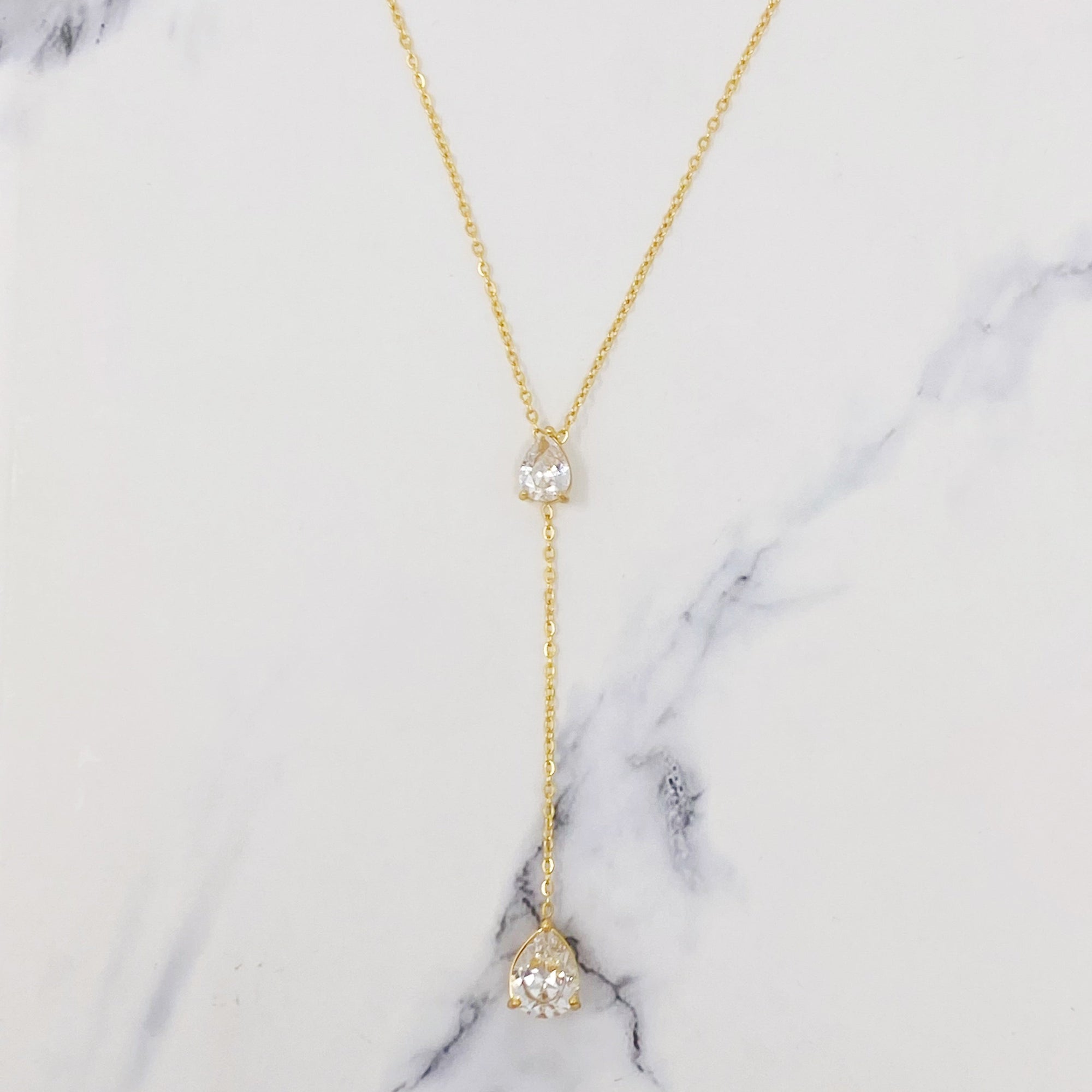 Absolutely beautiful 2 different tear drop solitaire Cubic Zirconia stones make a perfect harmony in this necklace. Gorgeous with dainty chain and shines beautifully!