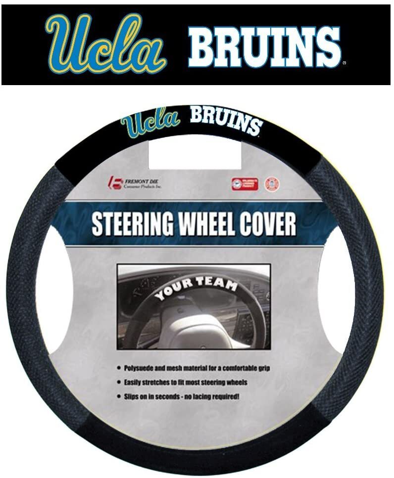 Drive in style with these high quality poly-suede steering wheel covers! This cover is made of poly-suede and mesh for a comfortable grip and features your favorite team logo. It easily stretches to fit most steering wheels and slips on in seconds, with no lacing required.