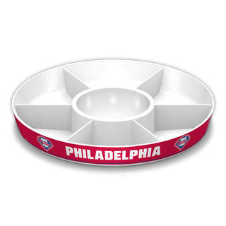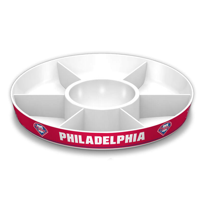 Snack in spirited style with this versatile Party Platter! Bright and bold 14 1/2" dia. melamine platter features your favorite football team graphics and colors and can be used alone or with custom dividers. Includes 6 removable dividers and a dipping bowl, so you can choose from 7 different serving configurations by simply sliding the slotted pieces together. Specify team. Hand wash with mild soap.