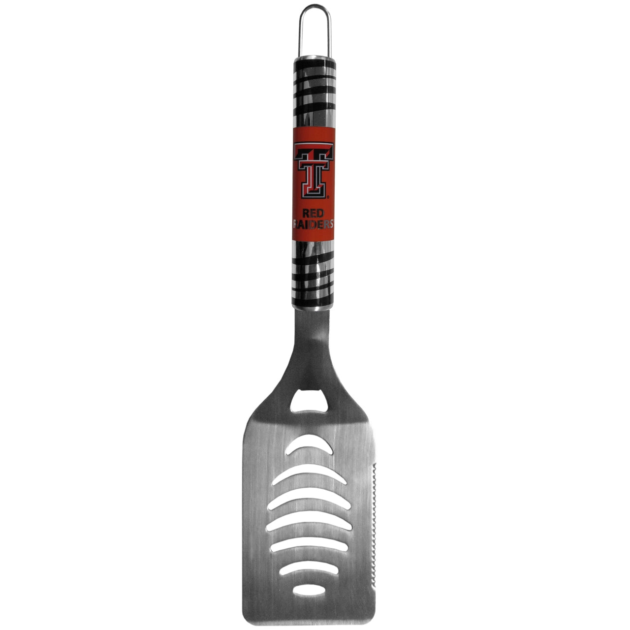The tailgater spatula really catches your eye with flashy chrome accents and vivid digital graphics. The 420 grade stainless steel spatula is a tough, heavy-duty tool that will last through years of tailgating fun. The spatula features a bottle opener and sharp serrated edge.