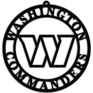This cutout door hander is 16 inches in diameter and features the team logo cutout in the center with the name cutout in the border. The hollow design makes it easy to display and not clash with any wall, door or window. Made of black PVC.