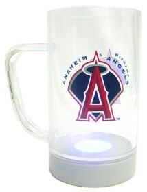 Flashing red, blue, and green LED lights will add spectacular color to your favorite drink. The lights are activated when the acrylic mug is picked up and tilted to take a drink. The lights automatically turn off within 10 to 15 seconds. There is a button on the bottom to turn the lights off. The mug is 6 inches tall and holds 19 fluid ounces. Requires three AAA batteries.