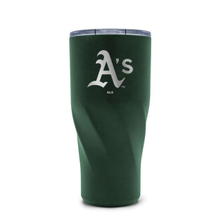 Powder-coated with team color finish. Iconic twist for additional grip. Dishwasher safe. Vacuum insulated for superior temperature control. Molded rubber base serves as a coaster. Laser engraved team logo. Slider lid.
