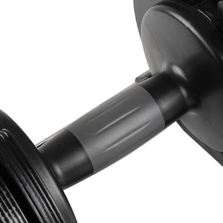 This Adjustable Steel & Plastic Dumbbell Set is a durable in-home solution to working out the upper and lower body when space is a premium and you need a professional workout. 52 LBS capacity.