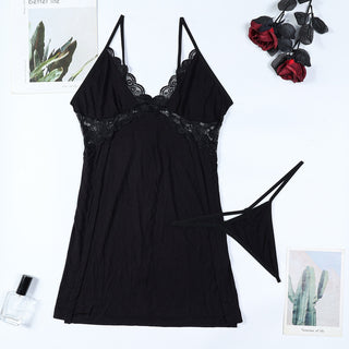 Elevate your evening with this Black Solid Lace Splicing Two-Piece Nightgown set. Crafted from soft modal cotton, it offers breathable comfort while the delicate lace adds a touch of elegance. The thigh-high slit and sexy straps enhance your silhouette, making this set perfect for intimate moments or stylish homewear. Designed to combine allure and comfort effortlessly, it promises to make you feel confident and irresistible.