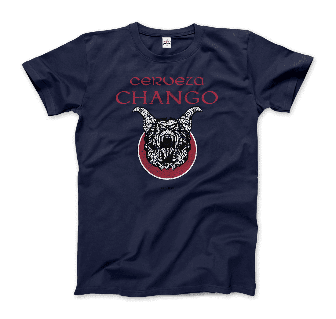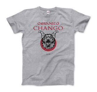 This amazing tee features the logo of the poor-quality beer Cerveza Chango. The beer is named after Chango, the Santeria Orisha of thunder, lightning, and gunpowder. You know it's a shady place if they serve Chango. It is the number-one choice ar the Titty Twister.