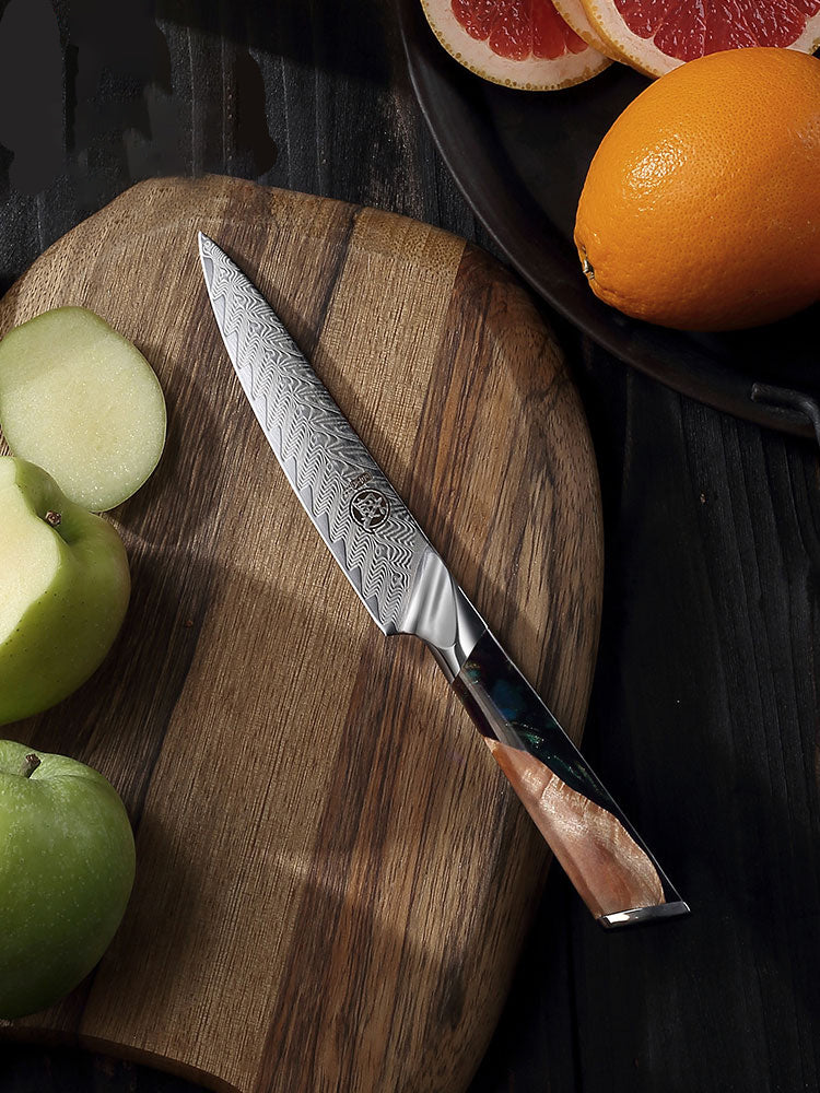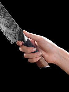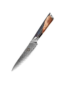 This professional grade kitchen knife will make everything easier in the kitchen when you need a dependable blade. Made of Damascus steel and Shadow wood, you'll enjoy the effortless handling and performance.