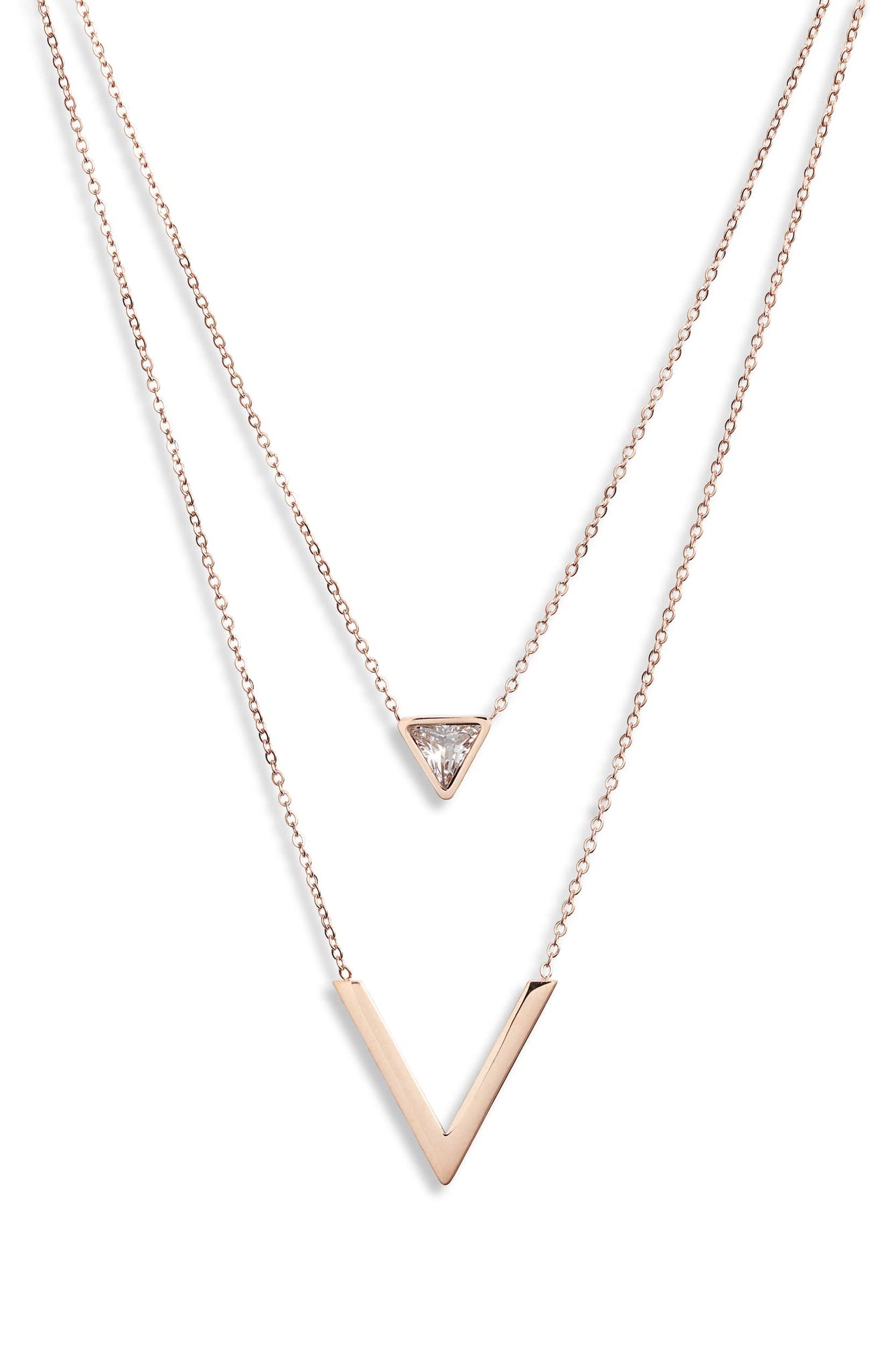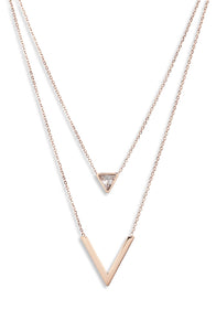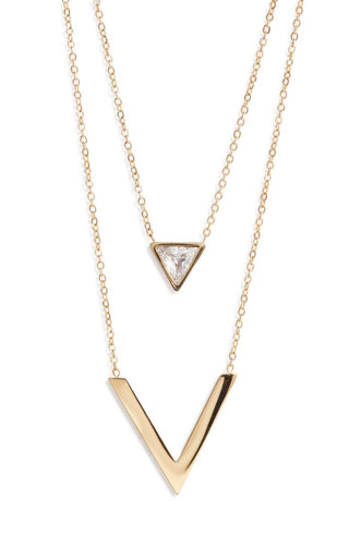 Double inset V necklace with Cubic Zirconia triangle focal.