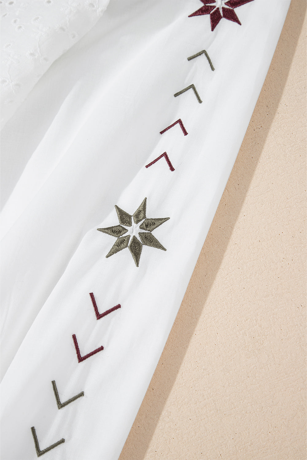 Embroidered Eyelet Collared Neck Long Sleeve Shirt