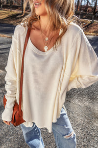 Exposed Seam Round Neck Long Sleeve Blouse
