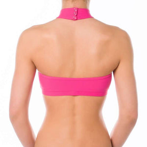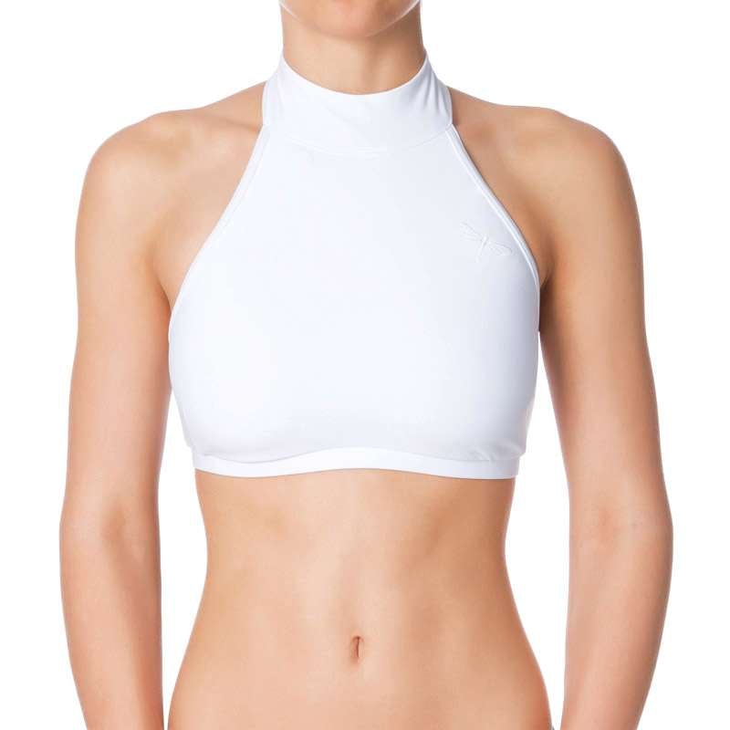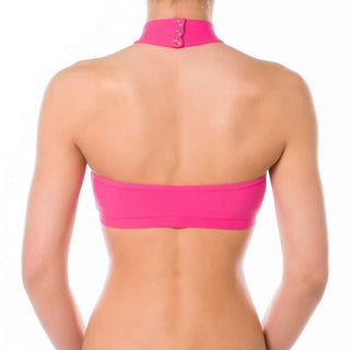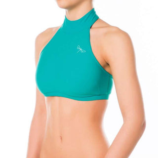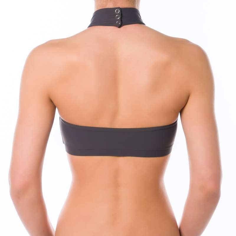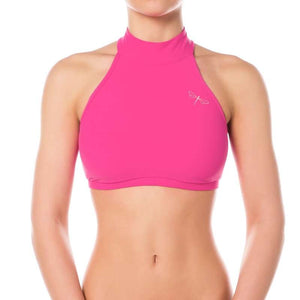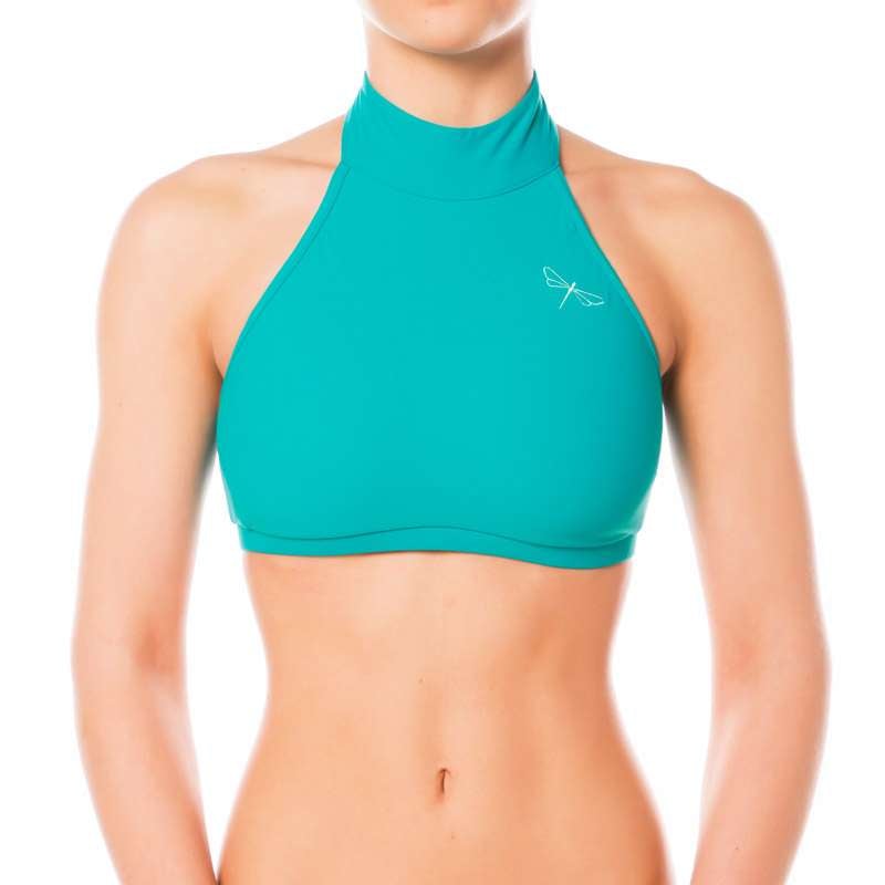 Addictive sports halter top. Very comfy and simple but perfectly developed and shaped cut keeps your shoulders uncovered, which is appreciated especially by pole dancers, who need maximum grip in the shoulder area. The chest bend is wider, which ensures this sports bra will stay where it is supposed to stay in any movement. Inspired and named after Lisette Krol (Doubles World Pole Sports Champion) who was the very first person testing it and wearing it. Thank you, Lisette! Same as all Dragonfly sports bras is also Lisette halter top double fronted. The neck fastening is made with 3 small metal studs and 100% reliable. There is obviously a decent Dragonfly logo embroidery on the front. The symbol of premium quality Pole dance clothes. However, this sports bra is not only for pole dancers but also perfect for Fitness workout, Ballet, Dancing or Bikram hot yoga.