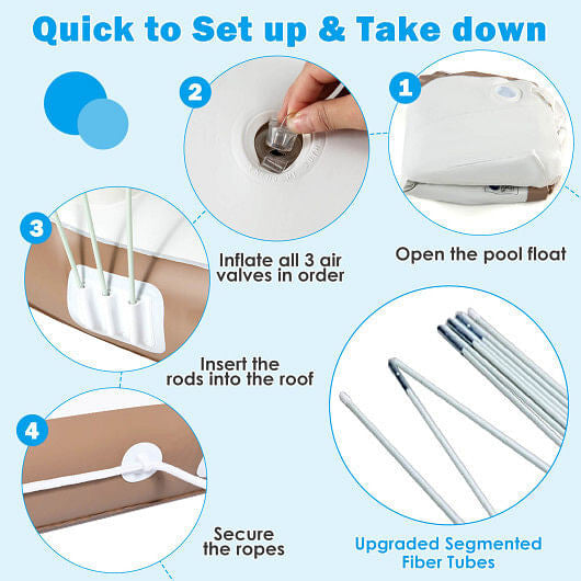 Relax in style with the Inflatable Pool Float Lounge Swimming Raft, designed for comfort and convenience. Featuring a detachable sunshade made from silver-coated fabric, it provides excellent sun protection so you can enjoy your time outdoors safely. With two built-in cup holders for easy access to your favorite drinks and three air valves for quick inflation and deflation, setup is hassle-free. Crafted from durable, waterproof, and eco-friendly PVC, this float supports up to 441 lbs. Its foldable design ensures easy transport and storage, making it perfect for any pool day.