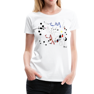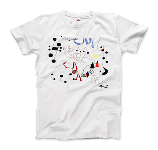 This amazing tee carries a colorful artwork from the great Joan Miró i Ferrà. Coded signs coexist with the unpredictable morphology of the woman, a delicate calligraphy and a decisive gesture. Earning international acclaim, his work has been interpreted as Surrealism, a sandbox for the subconscious mind, a re-creation of the childlike, and a manifestation of Catalan pride.