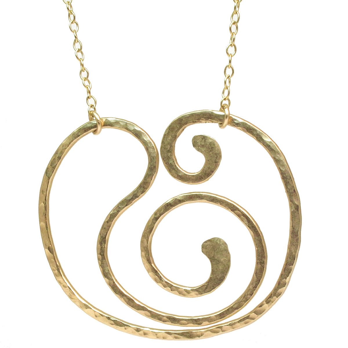 These hammered heavy gauge swirl shaped necklace is a perfect casual or formal occasion accessory. About 18" in length.