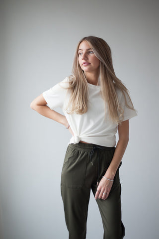 These pants are buttery soft, while still being thicker and heavier than our Signature Uptown Joggers. Designed for being on the move, these pants are flattering on all body types and stretch with you throughout your daily routine. Wear them around the house, to practice, the gym etc. They feature a functional drawstring waistband, front and back pockets, and slim cut legs. You'll never want to take them off and truthfully, we don't see why you should.