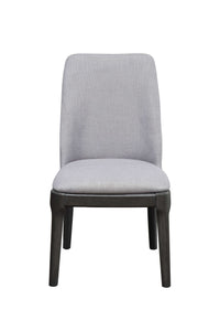 Turn the spotlight to your dining section with this superb gray oak side chair. It is beautifully constructed with the best of wood materials and upholstered in alluring light gray linen fabric. Striking features of this delectable chair include, tapered wooden legs with walnut finish. This chair is designed to withstand abrasion, spills, and the pressure of elongated usage. It presents a classy mix of natural materials to create a chair which not only blends with any contemporary decor, but is comfortable enough to accommodate everyone. It is available in the size of 23" x 21" x 39". It is indeed befitting for any contemporary home.SHIP FROM : USASHIP TO : USA