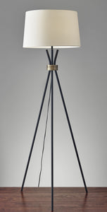 A stunning silhouette with mid-century elements, this floor lamp is a tripod of black metal legs gathered at the neck with an antique brass accent. It is topped with a modified drum shade in contrasting off white linen. A black fabric cord completes the modern statement. A three-way rotary switch is located under the socket. The 3-way rotary socket switch will only work with a 3-way light bulb, otherwise, this lamp will function with a simple on/off switch at its highest setting. This lamp is smart outlet compatible. Bulb is not included.SHIP FROM : USASHIP TO : USA