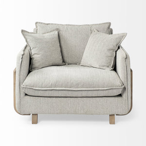 A mix of form and function, this 42" gray and wood brown fabric arm chair will bring a good looking and usable accent to your space. This sturdy fabric upholstered arm chair comes in a chic solid gray color to give your space just the right look. The high quality solid wood inner frame flaunts convenient armrests and a cushion back that are complimented by soft and comfortable cushioning. 33.07" H x 41.73" W x 43.3" DSHIP FROM : USASHIP TO : USA