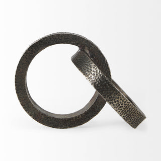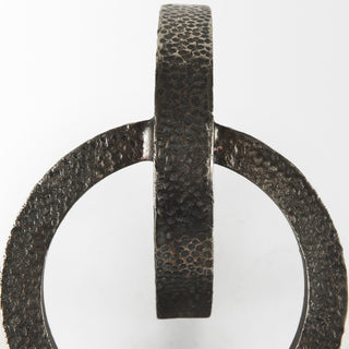 With this Two Ring Gray Hammered Metal Sculptureyou can add the perfect contemporary design touch to the decor in your home. This sculpture is made from solid metal and features two rings shapes that are conjoined together. These rings have a gray toned finish on them with a smooth inside and a hammered pattern on the outside. These two conjoined rings have a very contemporary art inspired design which will elevate any space you decide to use it in. The neutral colorway and the minimal design will work with any interior style or colors you already have in your home. 6" H x 6" W x 8" DSHIP FROM : USASHIP TO : USA