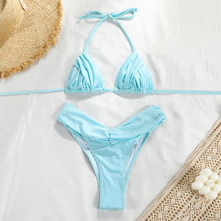 Elevate your swimwear collection with this stylish women's bikini set, featuring a modern pleated design in solid colors inspired by European and American trends. Crafted to highlight your silhouette, its sexy cut offers both comfort and confidence, making it perfect for beach days or poolside lounging. Explore the new color options to find your perfect match and embrace a fresh, sophisticated look this season.