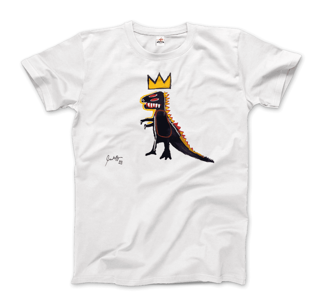 A complex, neo-expressionist style dinosaur wearing a crown. He appropriated poetry, drawing, and painting, and married text and image, abstraction, figuration, and historical information mixed with contemporary critique.
