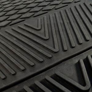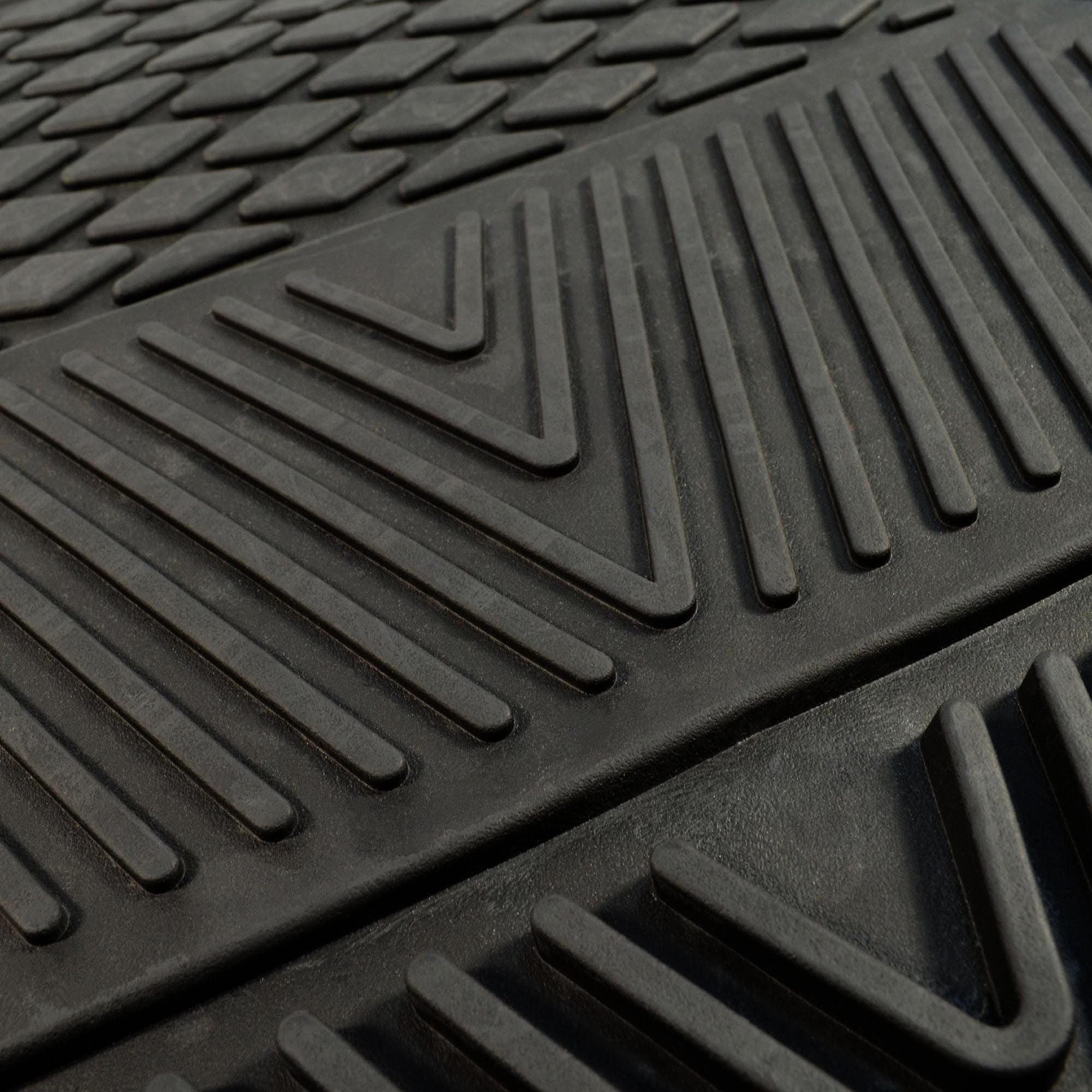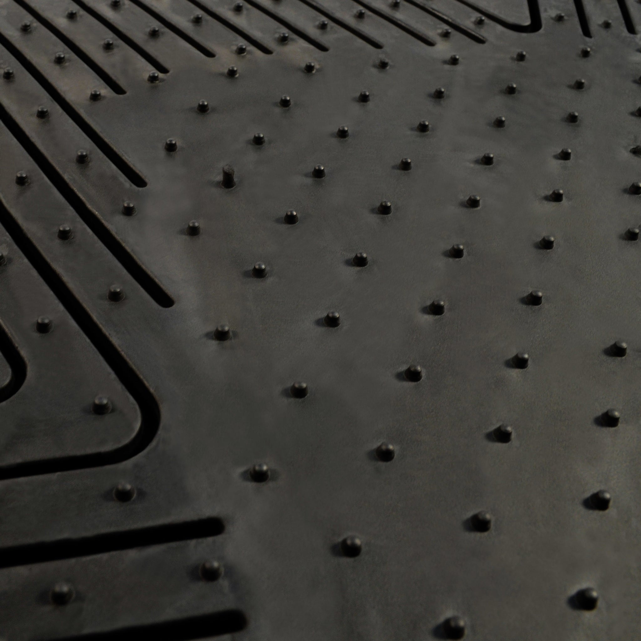 Bullet Points: Universal size to fit all vehicle sizes; 100% heavy-duty vinyl construction adds durability; Durable vinyl withstands seasonal changes for a longer life; Ribs scrape and clean the bottoms of shoes and deep pockets catch and hold dirt and water; 3-D logo m