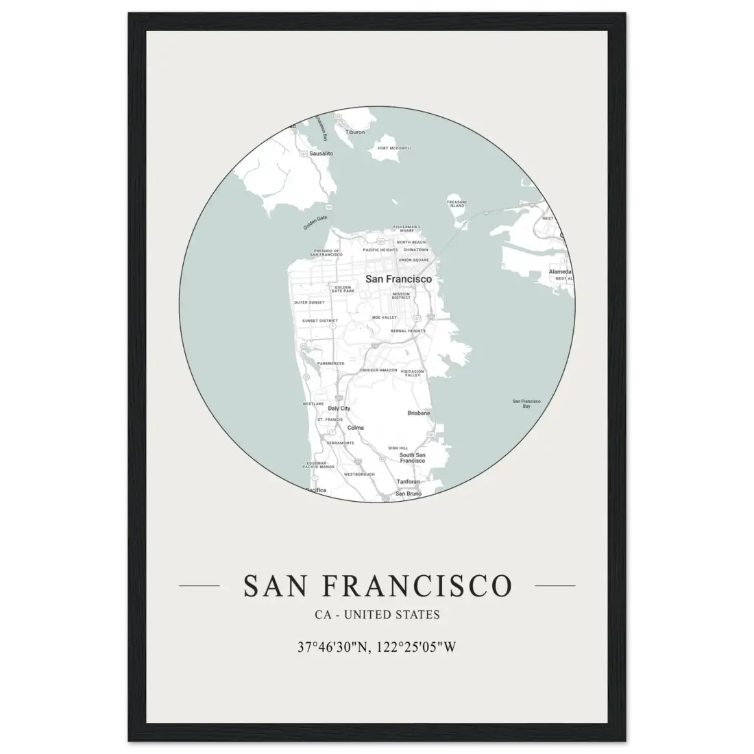 Elevate your decor with this sleek minimalist map poster of San Francisco. Featuring the city's iconic street grid in a modern design, it captures the unique character of the Bay Area. Perfect for any space, this piece adds elegance and makes a thoughtful gift for map lovers and adventurers.