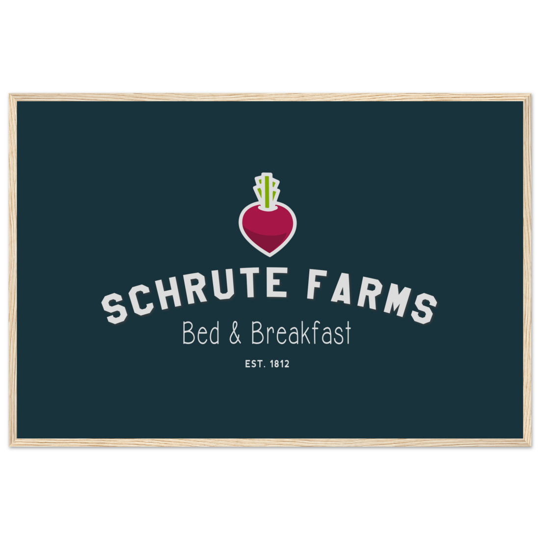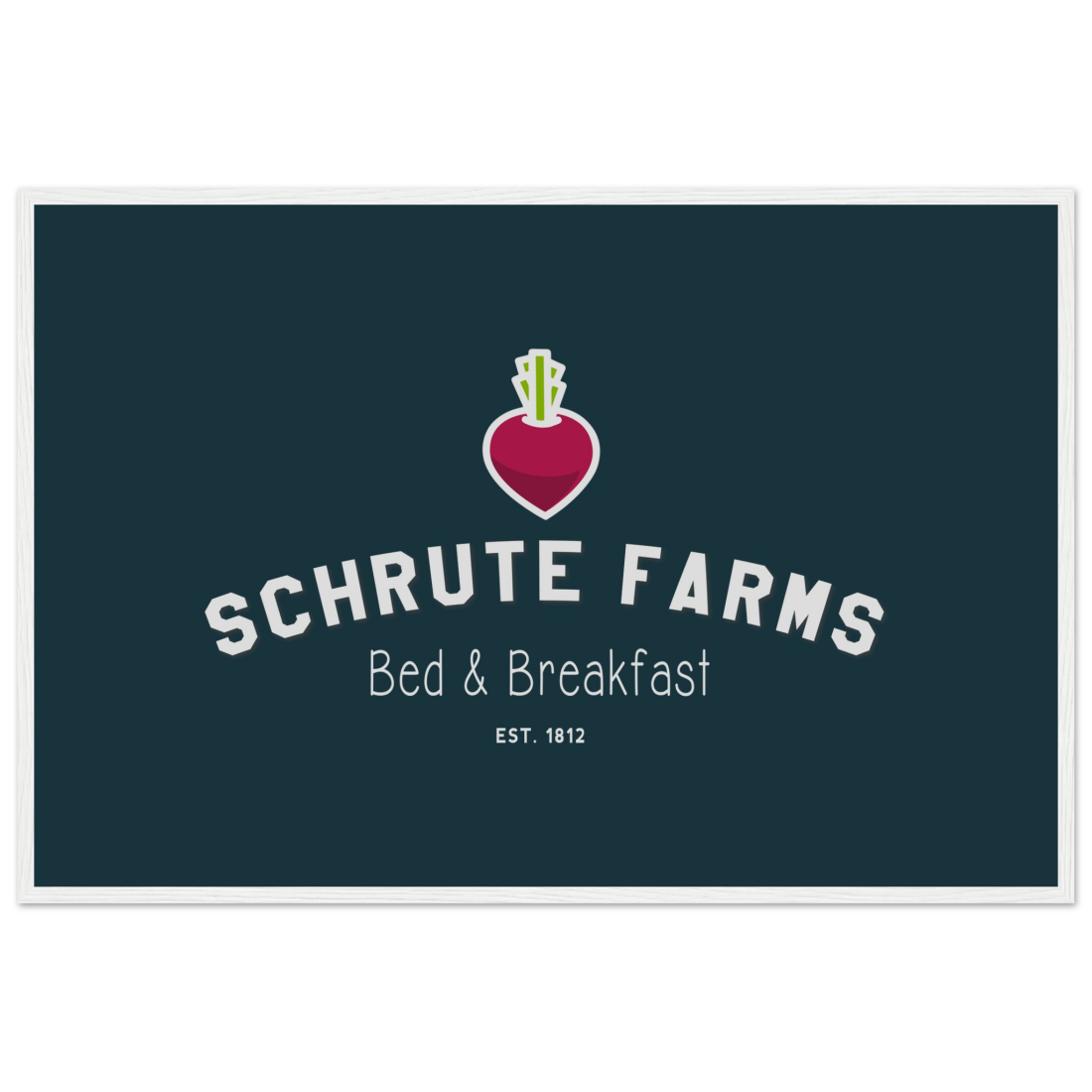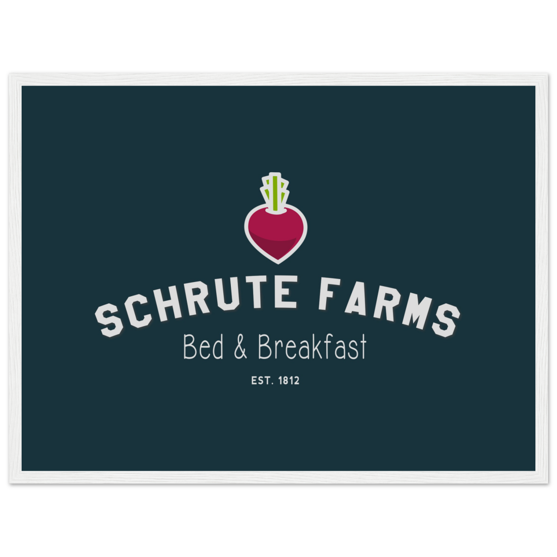 Experience rural charm with our 'Schrute Farms Bed and Breakfast' poster. Inspired by the iconic establishment from the hit TV show 'The Office,' this design captures the essence of rustic hospitality. Whether you're a fan of Dwight Schrute's antics or simply appreciate a cozy getaway vibe, this wall art is a must-have. Perfect for fans of the show or anyone seeking a touch of quirky charm in their home.