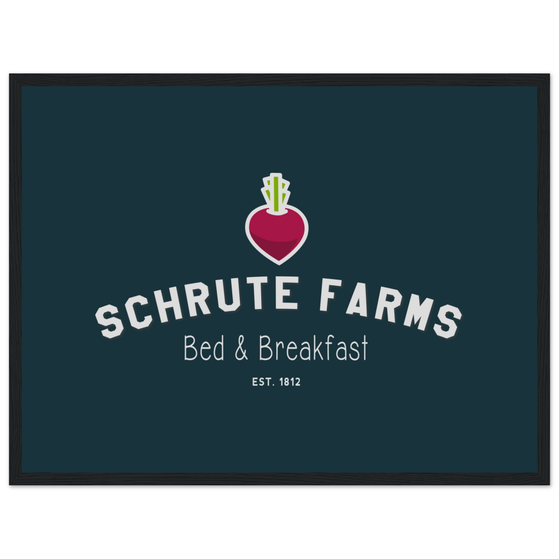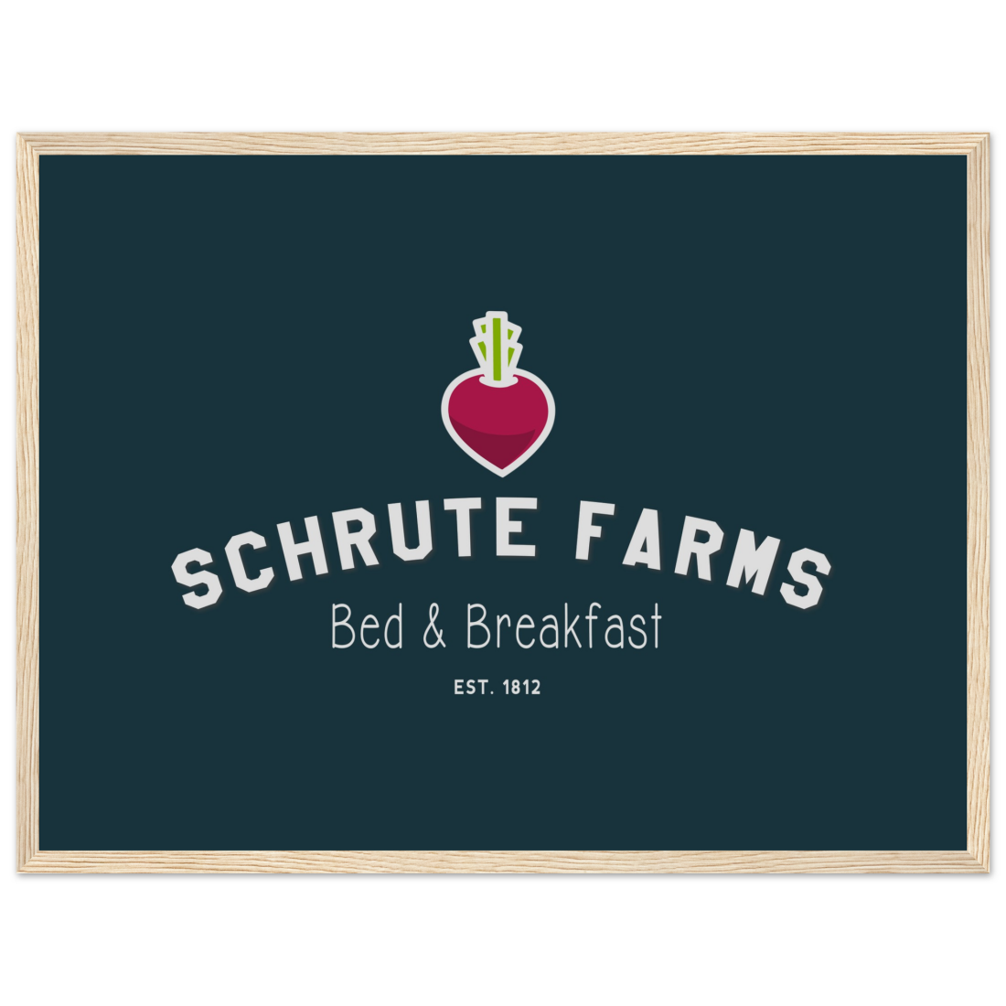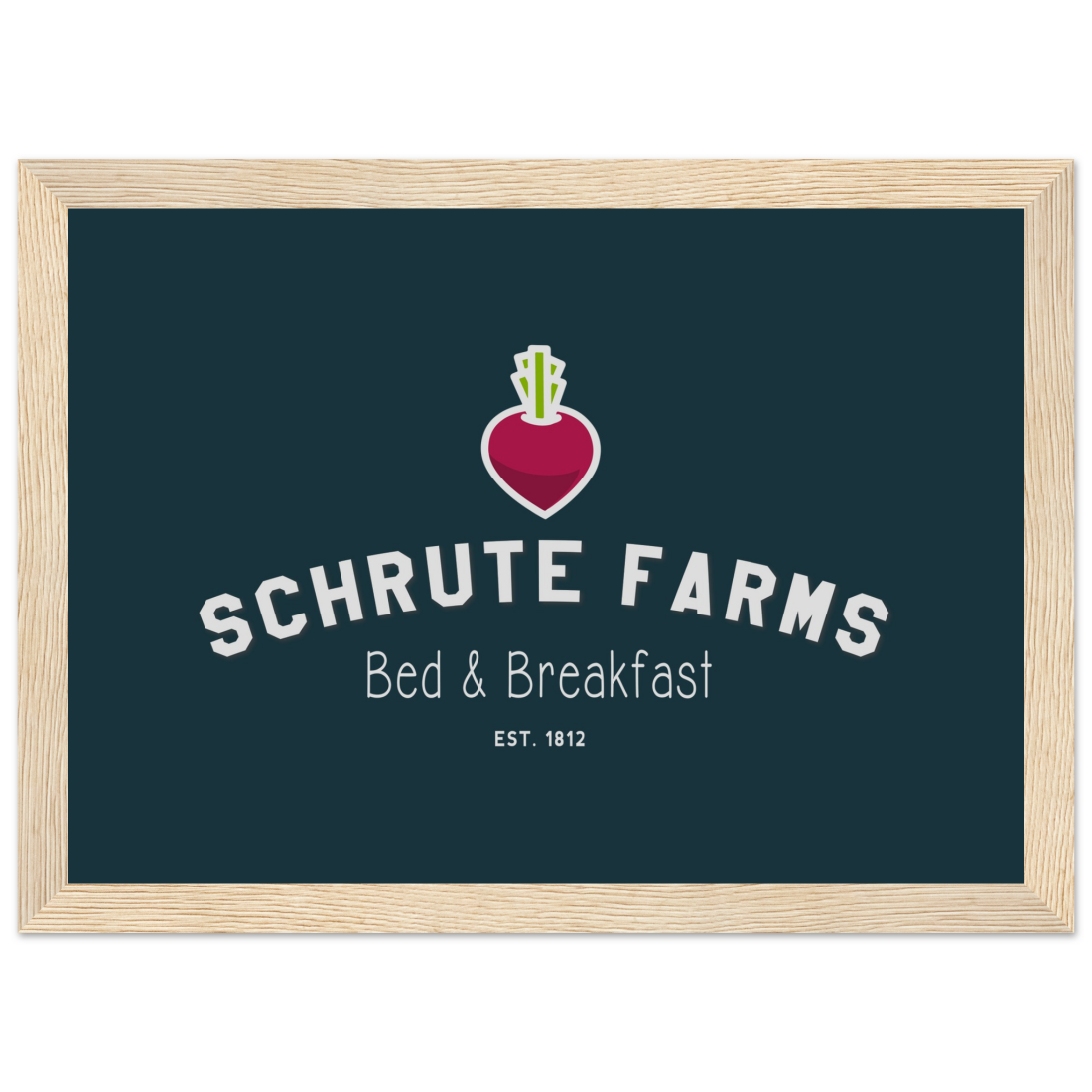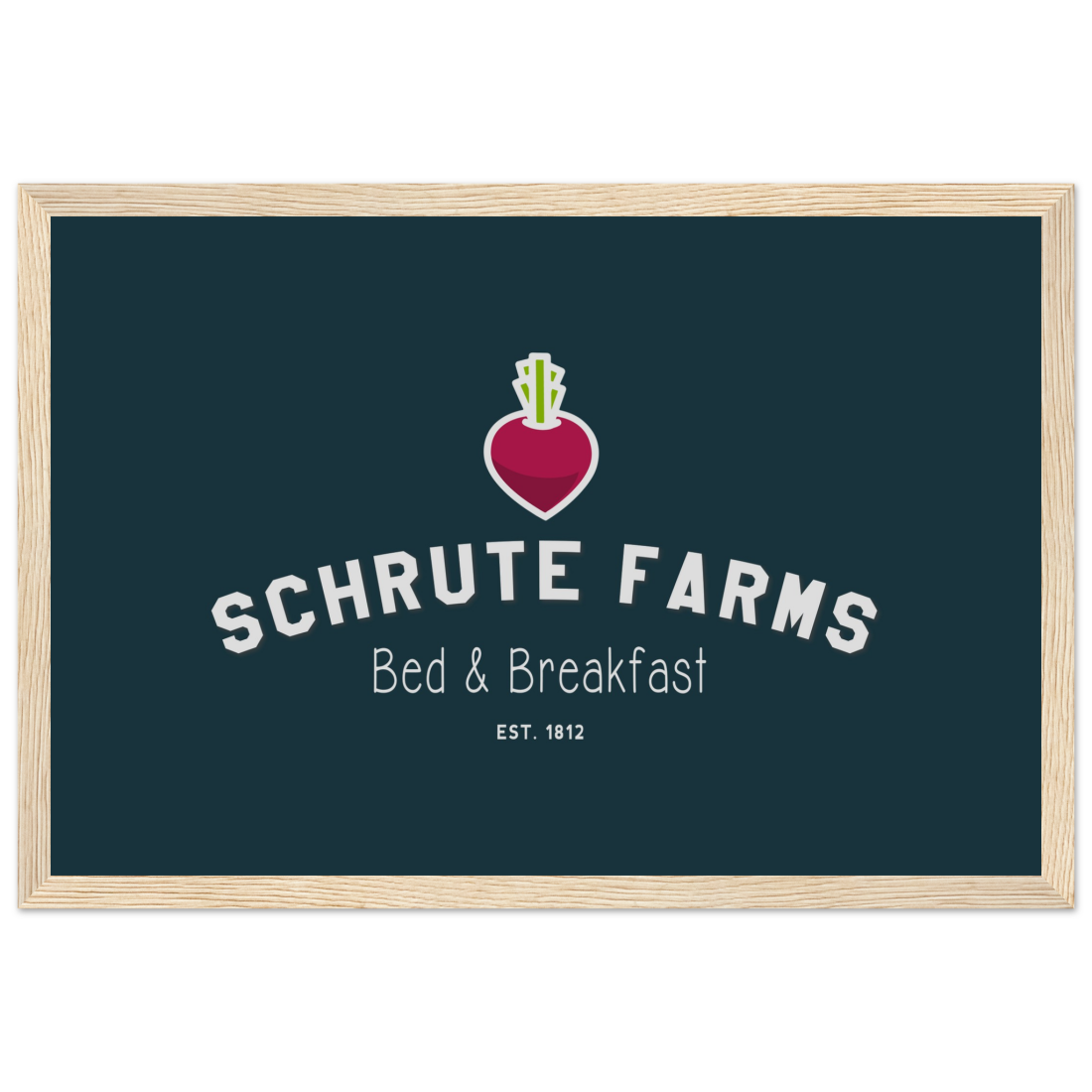 Experience rural charm with our 'Schrute Farms Bed and Breakfast' poster. Inspired by the iconic establishment from the hit TV show 'The Office,' this design captures the essence of rustic hospitality. Whether you're a fan of Dwight Schrute's antics or simply appreciate a cozy getaway vibe, this wall art is a must-have. Perfect for fans of the show or anyone seeking a touch of quirky charm in their home.
