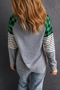 Striped Plaid Round Neck Long Sleeve Top