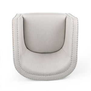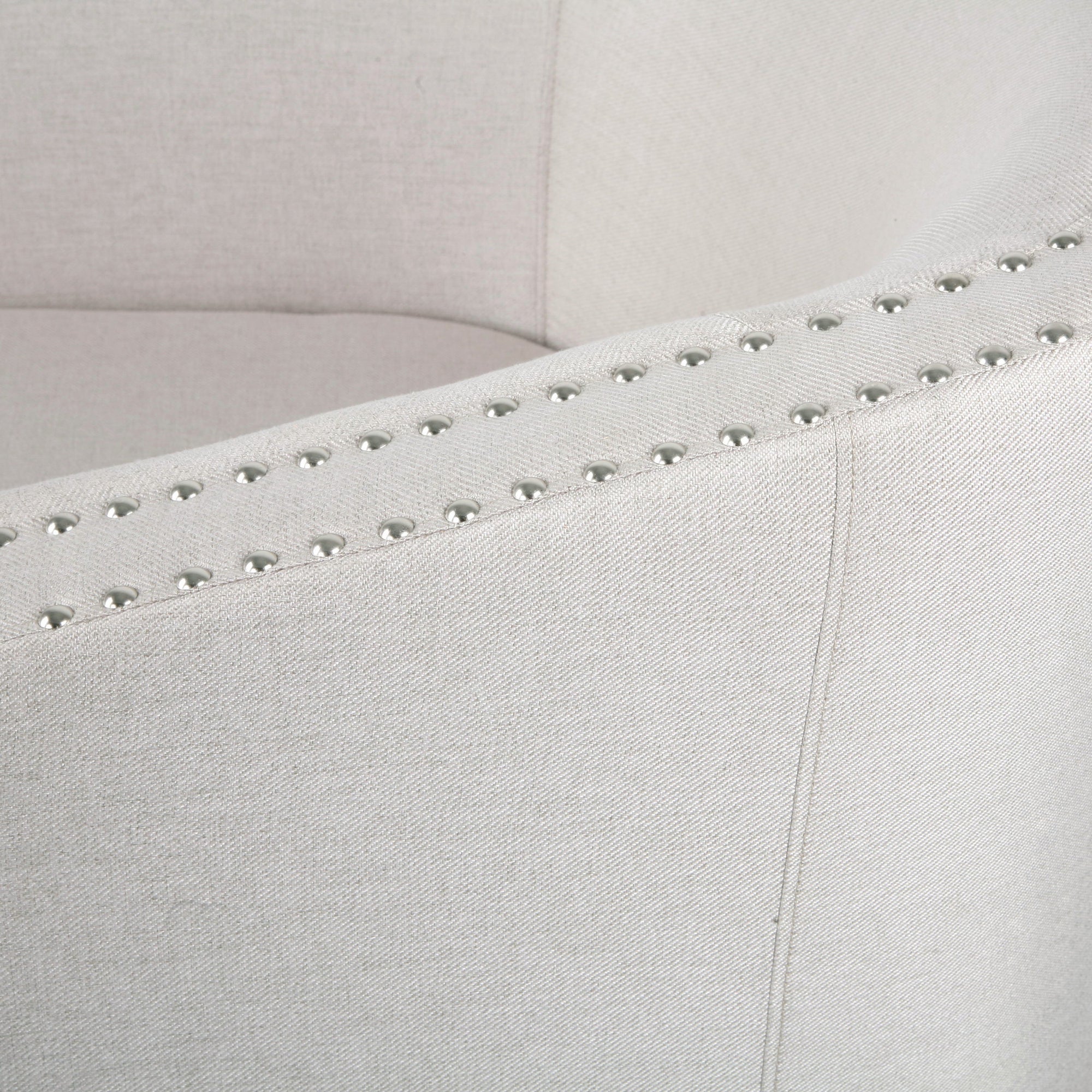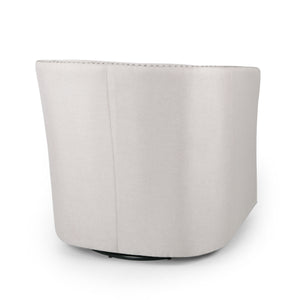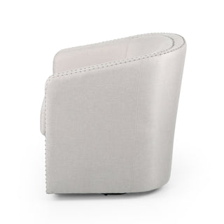 Combine a touch of modern with timeless design to get the best look for your home. Featuring a cozy tub design and convenient swivel rotation, our club chair brings you excellent comfort and style. This chair is finished with a double nailhead trim for a dash of sophisticated charm. Perfect for reading, relaxing, or watching a movie, this club chair blends seamlessly into any interior space. Includes: One (1) Chair Material: Fabric Fabric Composition: 100% Linen Leg Material: Iron Multiple Color Options Leg Finish: Black Hand-Crafted Details No Assembly Required Dimensions: 30.25 inches deep x 31.25 inches wide x 31.25 inches high Seat Dimensions: 21.50 inches deep x 21.25 inches wide x 18.50 inches high Arm Height: 25.60