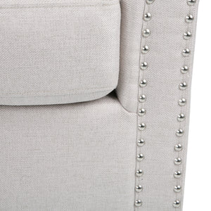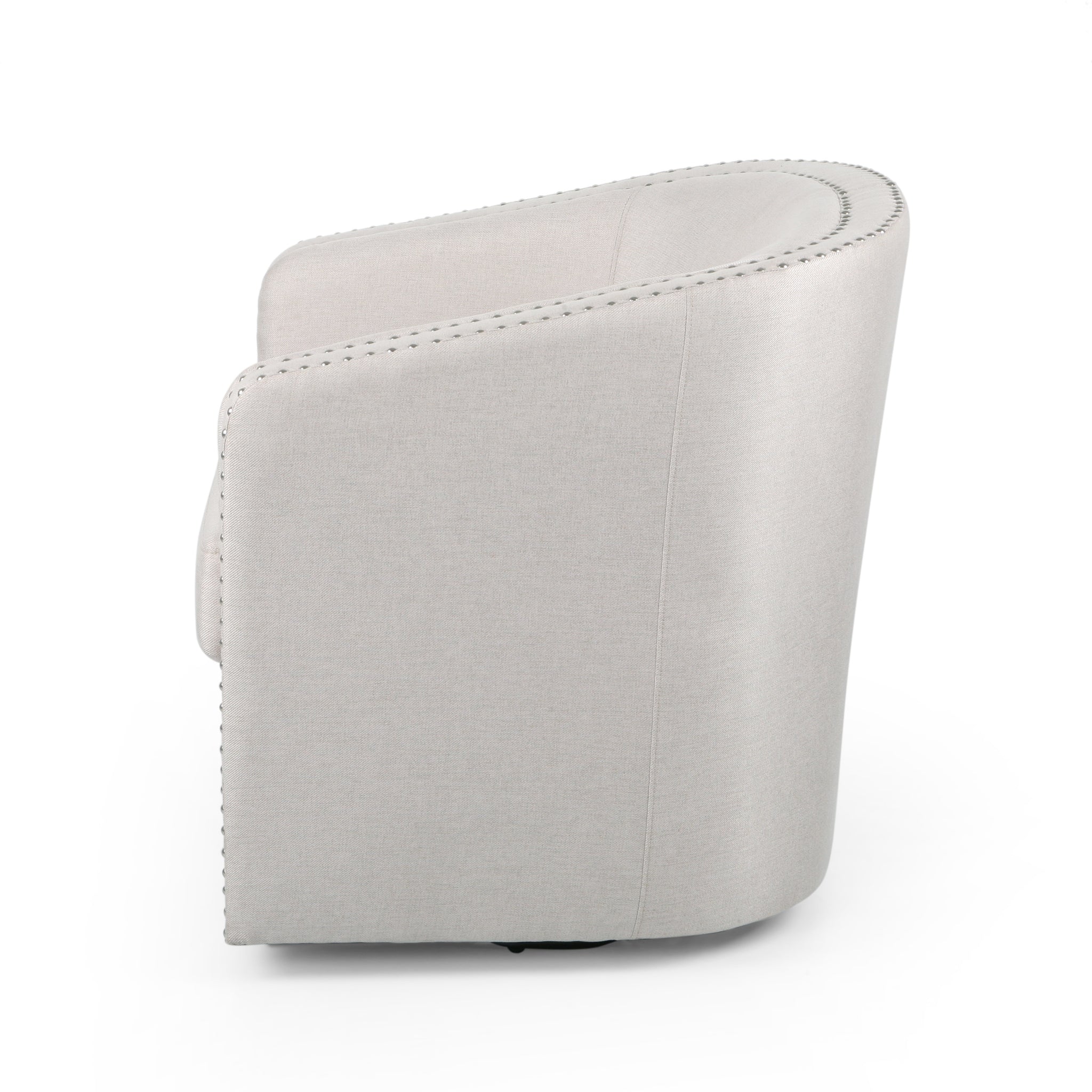 Featuring nailhead trims and classic tub shape, our swivel chair offers the look, feel, and design of a truly contemporary piece. With a minimalistic yet refined structure, this club chair brings out a simplistic style that emphasizes comfort and functionality. Our tub chair offers a barrel style that encompasses you in its subtly sloped arms for ultimate comfort. The design perfectly complements the swivel function of the chair. This club chair brings ultimate comfort to your living room with its convenient swivel function. This makes it easy for you to get in and out of your seat without the hassle of having to move your chair. This club chair spares no expense when it comes to its finishing details. Expertly styled, this piece has tasteful nailhead accents bordering the armrest and backrest. Each nailhead is individually applied for a beautiful, hand-crafted touch. Choose an accessory that is the perfect size for you and your furniture. This club chair is 30.25” W x 31.25” D x 31.25” H. You will love how much your space can transform with the simple addition of this charming swivel chair.
