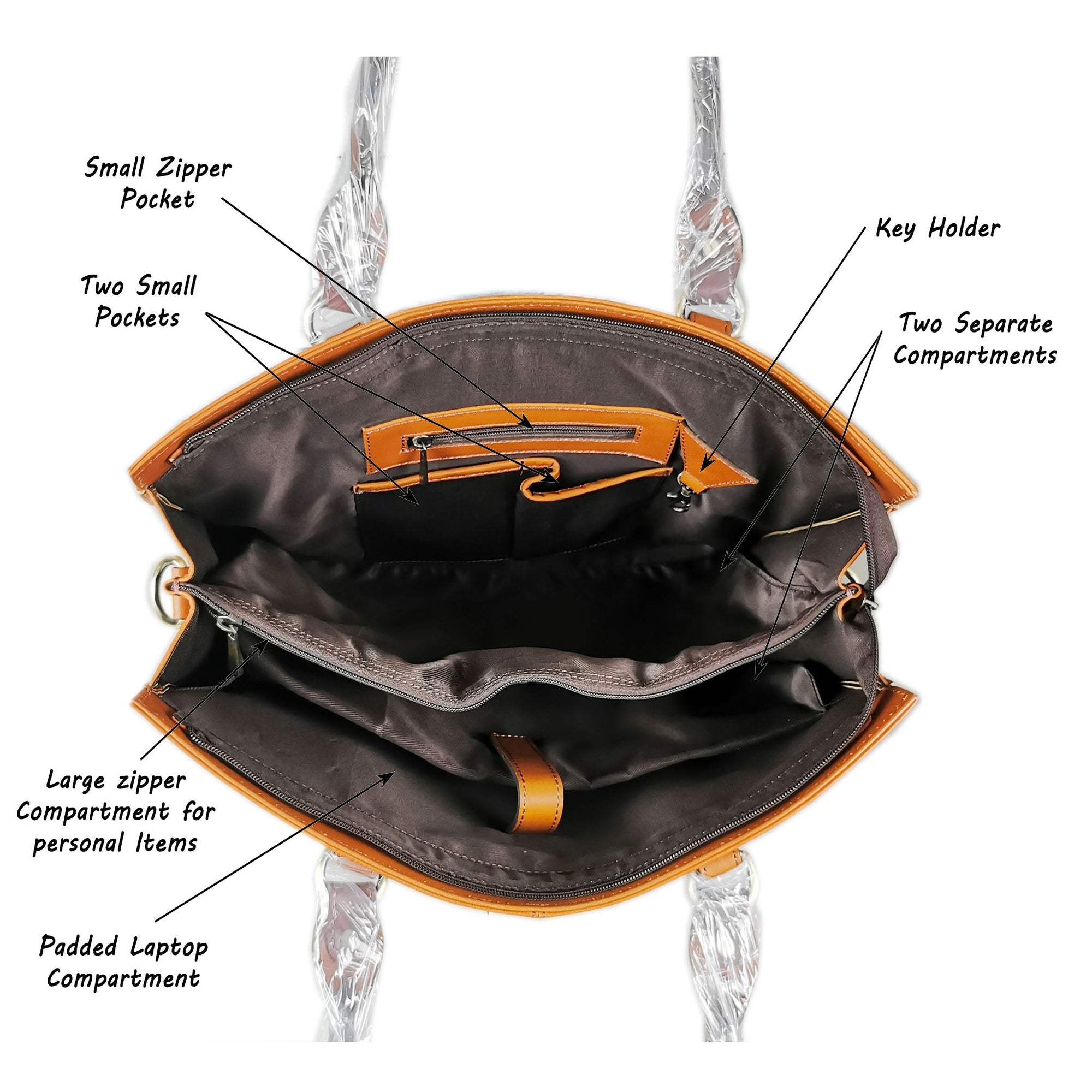 Perfect for the Modern Woman: Practicality meets style for the professional woman. No need to change bags from office to party.