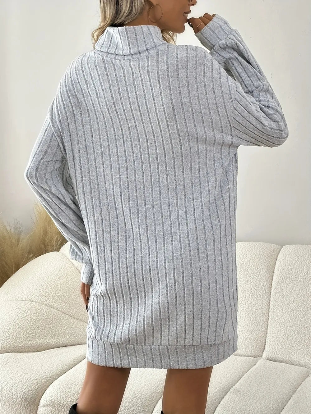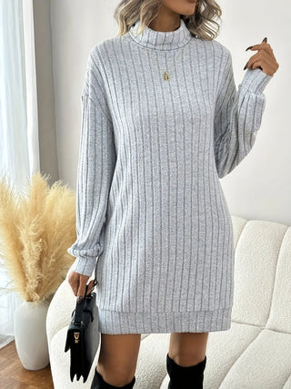 Elevate your cool weather style with our Turtleneck Dropped Shoulder Long Sleeve Mini Dress. Made from a Poly-Blend fabric, this dress offers a classic touch and a trendy look. Perfect for any occasion, it's designed to keep you stylishly comfortable all day long! Care instructions: Machine wash cold. Tumble dry low.