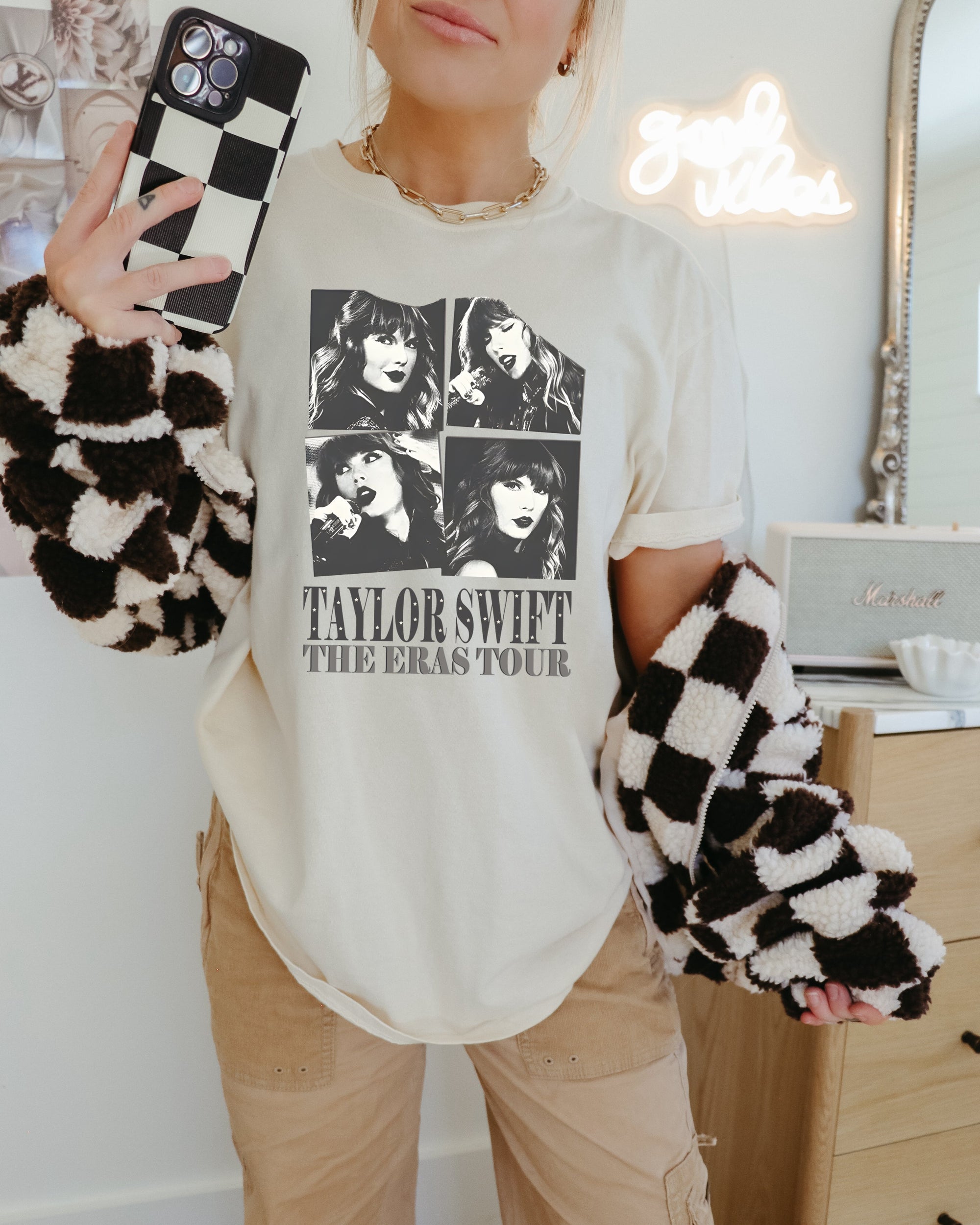 Celebrate your love for Taylor Swift with this Vintage Eras Tour tee designed specifically for women. Featuring a timeless retro style, this comfortable shirt lets you showcase your fandom with subtle nostalgia. Perfect for concerts, casual outings, or everyday wear, it combines classic fashion with your favorite artist’s iconic eras. Embrace the spirit of the tour and stand out in style wherever you go.