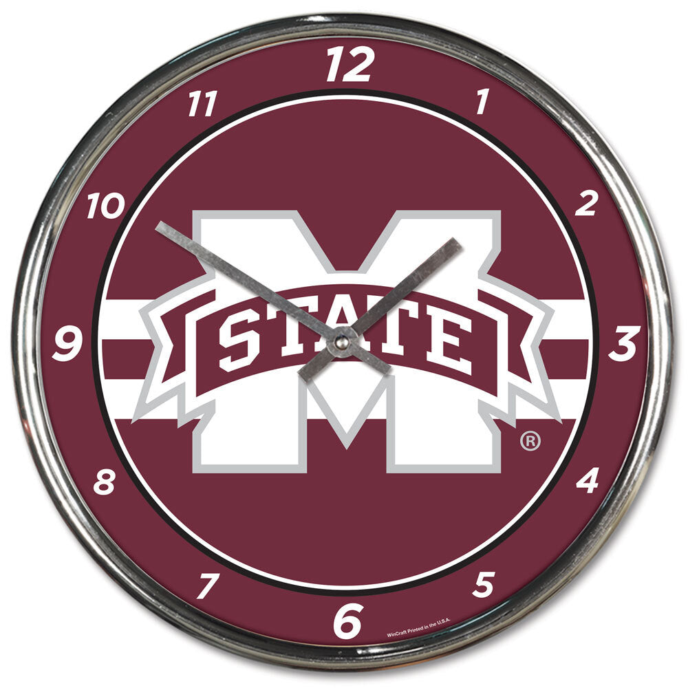 The 12" Chrome plated clock is both a retro classic, and a trendy find for a wall clock. Stunning graphics with a metal hands make a great fit in any fan cave, office, bar, or bedroom. Printed and assembled in the US with imported materials.
