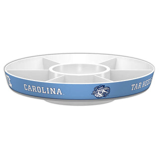Snack in spirited style with this versatile Party Platter! Bright and bold 14 1/2" dia. melamine platter features your favorite football team graphics and colors and can be used alone or with custom dividers. Includes 6 removable dividers and a dipping bowl, so you can choose from 7 different serving configurations by simply sliding the slotted pieces together. Hand wash with mild soap.