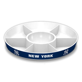 Snack in spirited style with this versatile Party Platter! Bright and bold 14 1/2" dia. melamine platter features your favorite football team graphics and colors and can be used alone or with custom dividers. Includes 6 removable dividers and a dipping bowl, so you can choose from 7 different serving configurations by simply sliding the slotted pieces together. Specify team. Hand wash with mild soap.