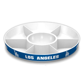 Snack in spirited style with this versatile Party Platter! Bright and bold 14 1/2" dia. melamine platter features your favorite football team graphics and colors and can be used alone or with custom dividers. Includes 6 removable dividers and a dipping bowl, so you can choose from 7 different serving configurations by simply sliding the slotted pieces together. Specify team. Hand wash with mild soap.