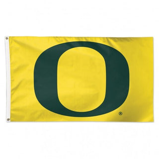 This Oregon Ducks 3' x 5' flag has attached D-rings to use for hanging. The imprinted design is 100% show through to the backside as a reverse image, with a long lasting color-fast die. Fly on a flagpole or hang it on a wall.