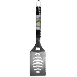 The tailgater spatula really catches your eye with flashy chrome accents and vivid digital graphics. The 420 grade stainless steel spatula is a tough, heavy-duty tool that will last through years of tailgating fun. The spatula features a bottle opener and sharp serrated edge.